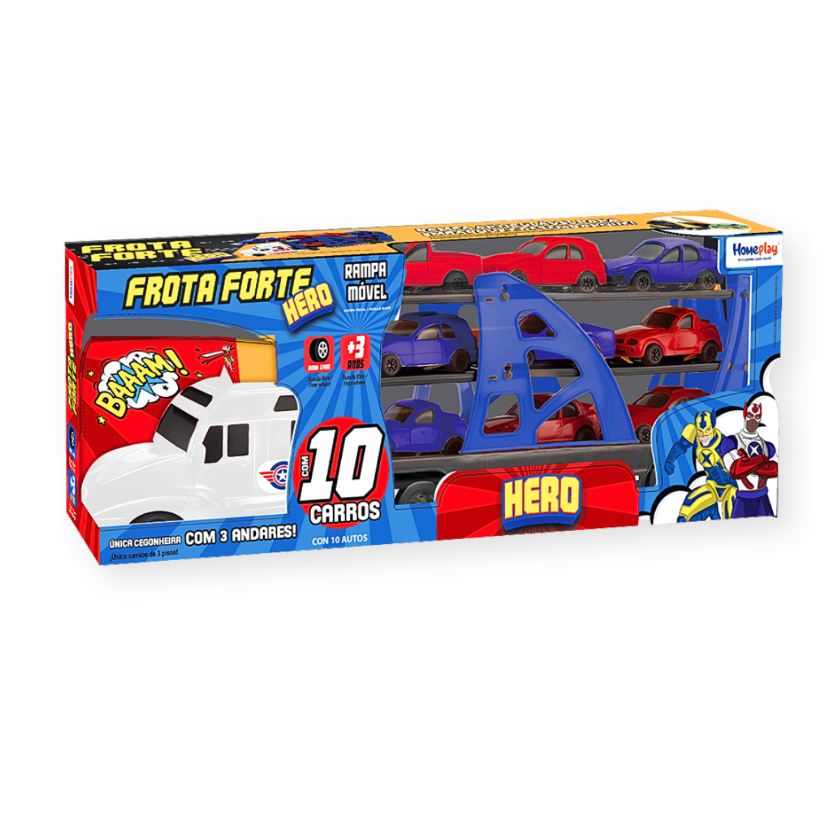 A Cegonheira Frota Forte é muito mais que um caminhão: é um verdadeiro parque de aventuras para os carrinhos! Com 3 andares espaçosos, uma rampa móvel super prática e 10 carrinhos inclusos, a brincadeira já começa completa e pronta para horas de diversão.