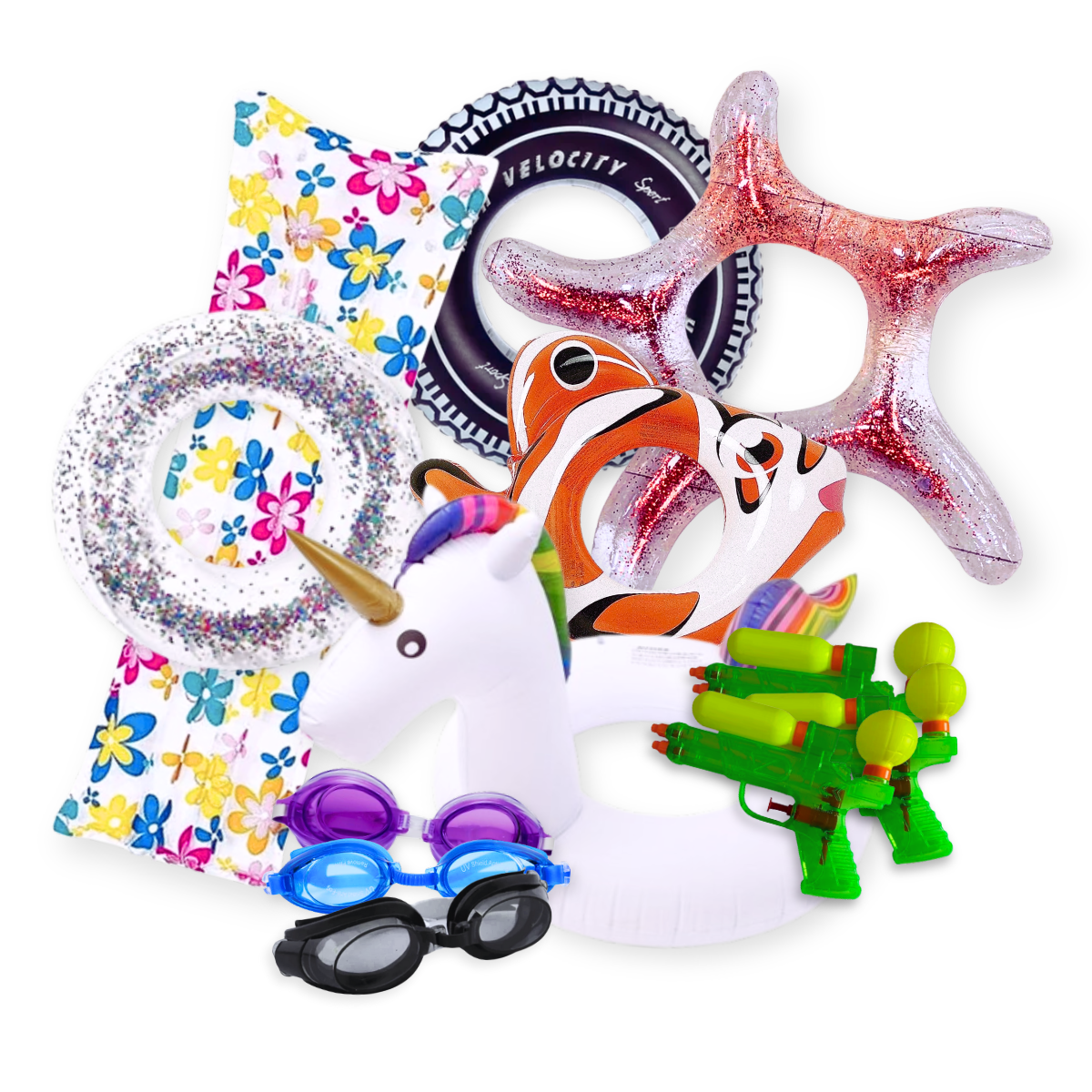 Kit Piscina com 12 Itens - Boias infláveis, óculos de natação e pistolas de água!