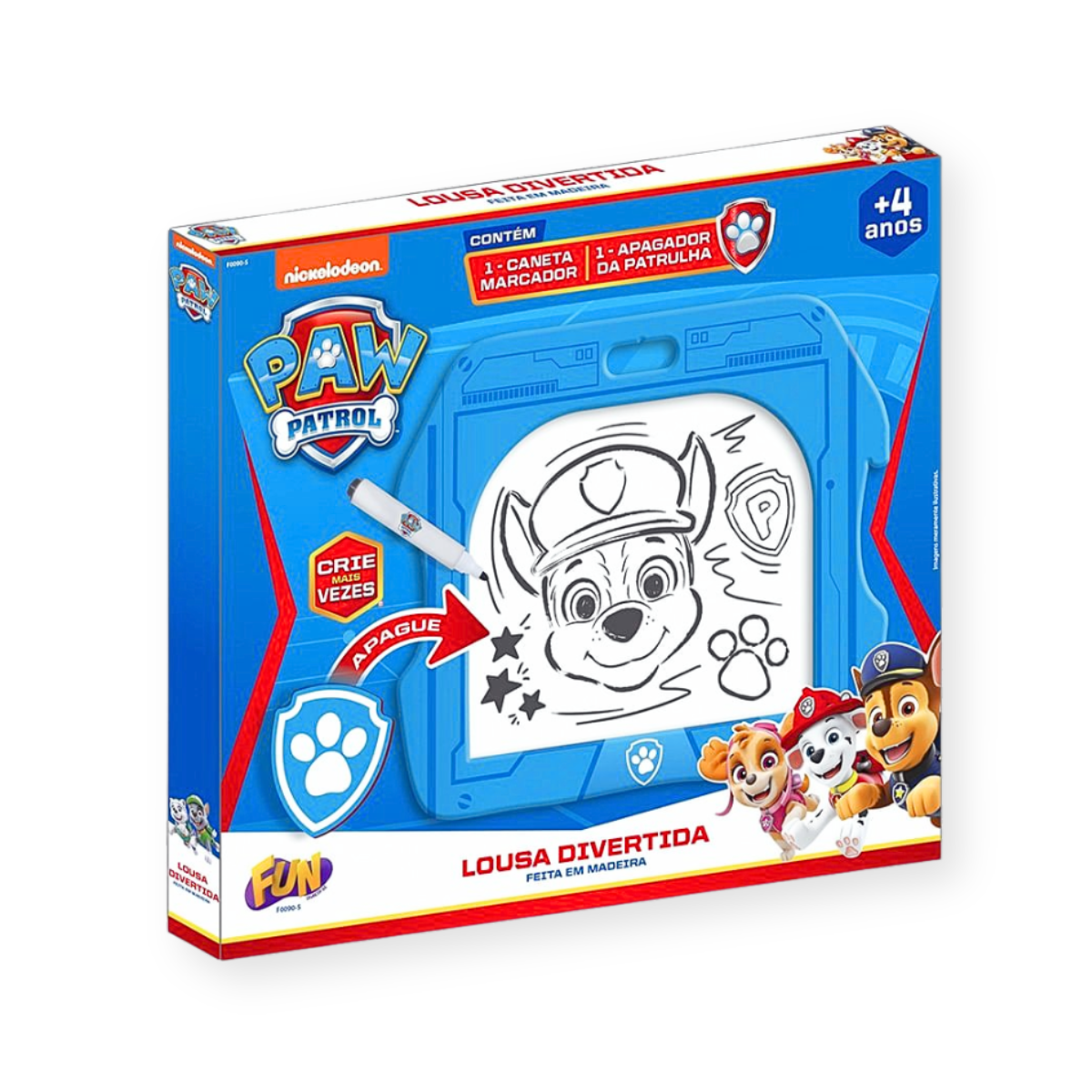 Com os personagens mais queridos da Patrulha Canina, a brincadeira fica ainda mais envolvente e estimula a imaginação. A lousa acompanha um marcador, mas também pode ser usada com quaisquer canetinhas PRÓPRIAS PARA QUADRO BRANCO, permitindo apagar e começar tudo de novo, sempre criando novas ideias.